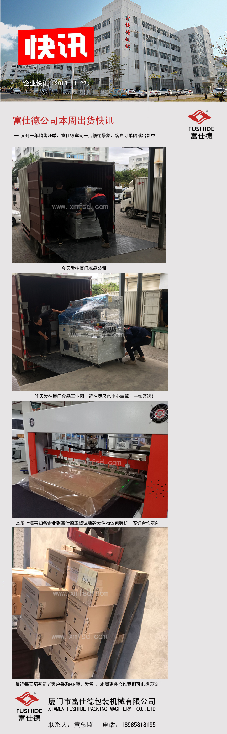 富仕德公司本周出貨快訊: - 又到一年銷售旺季,富仕德車間一片繁忙景象,客戶訂單陸續(xù)出貨中!本周更多合作案例可電話咨詢~ 聯(lián)系人:黃總監(jiān) 電話:18965818195